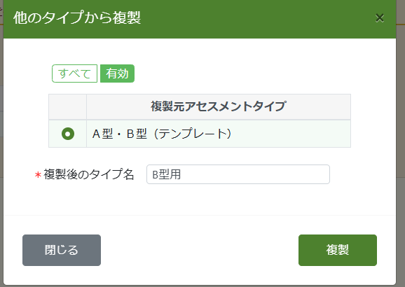 4. テンプレートを選択>複製後のタイプ名を入力し、複製をクリック
