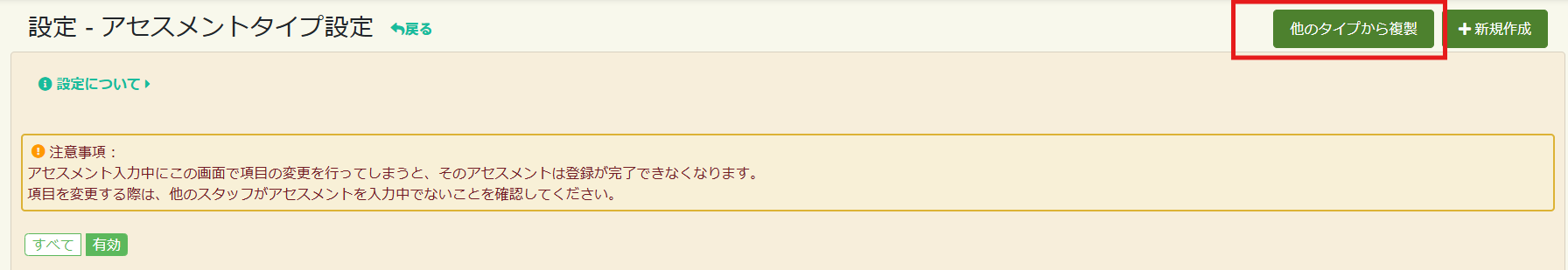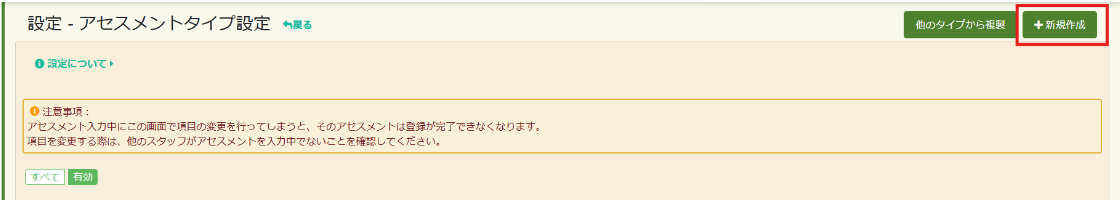 アセスメントは各項目をカスタマイズし、オリジナルのひな型(アセスメントタイプ)を登録することができます。