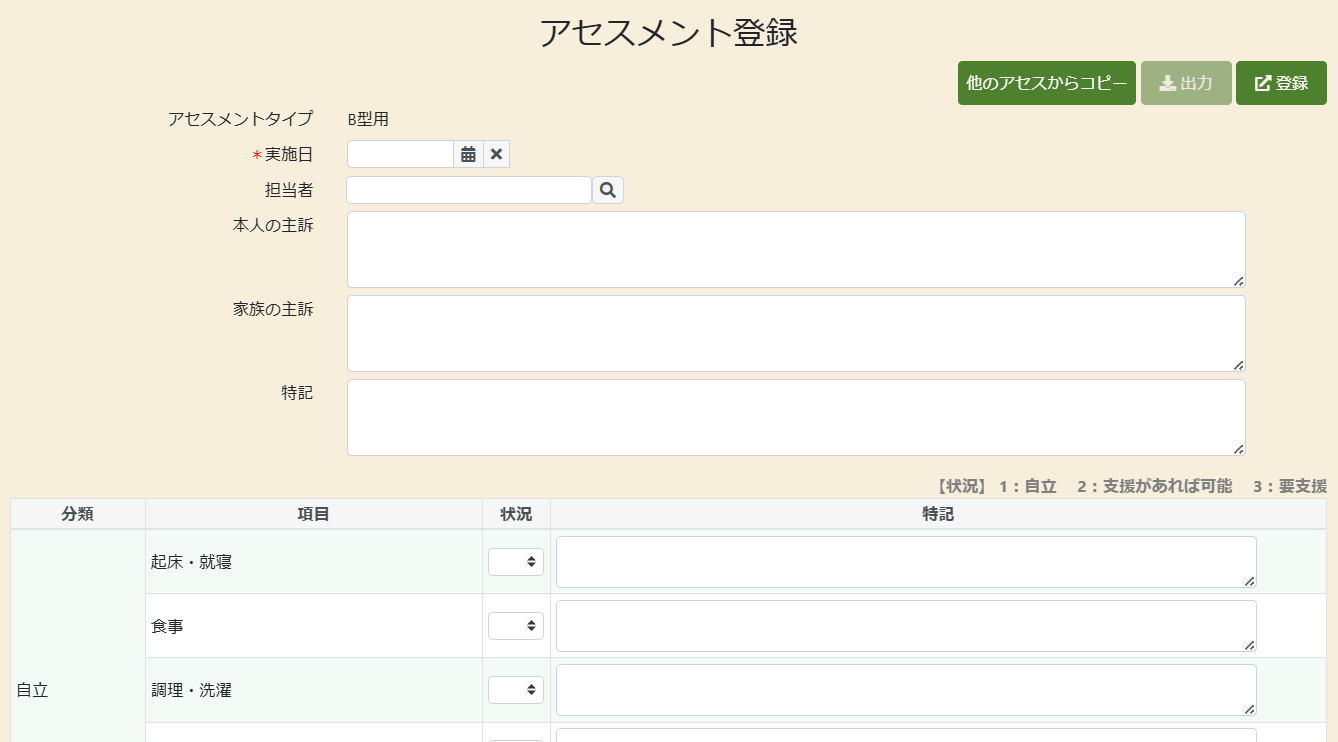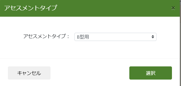 アセスメントタイプが選択できない場合は、設定が未完了と思われます。