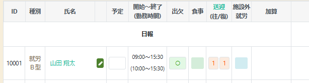 日別利用状況の送迎加算欄にある選択肢「1」 「2」についてご説明します。
