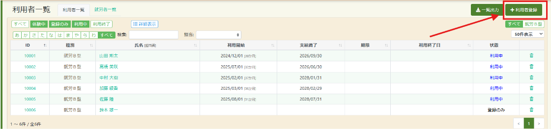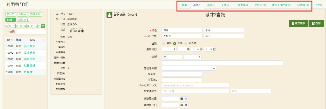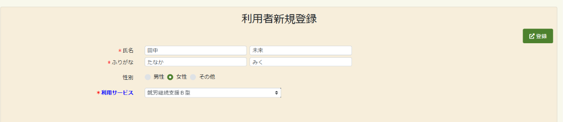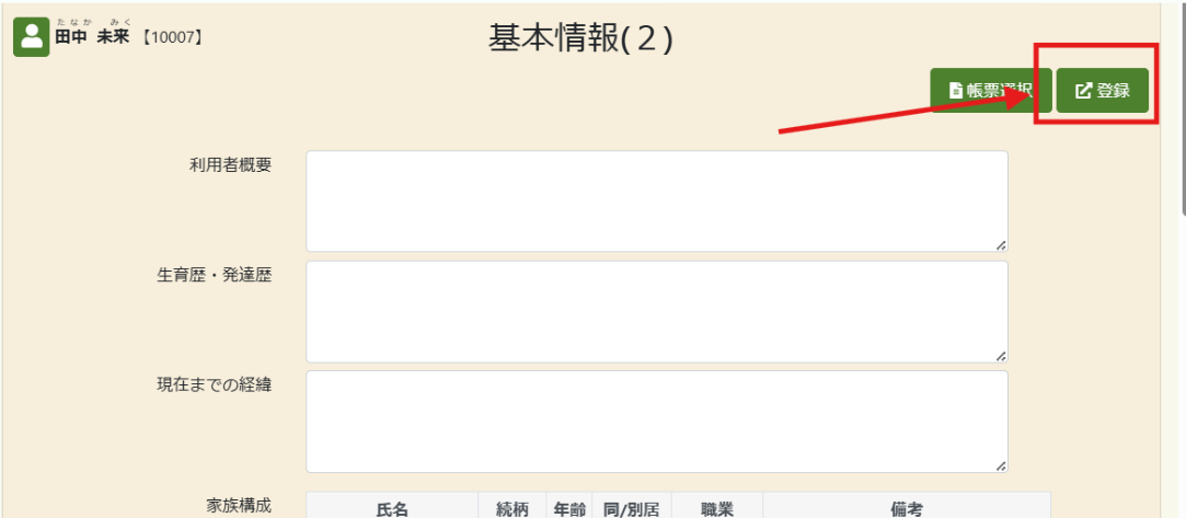 7.必要に応じて情報を入力し、画面右上にある登録をクリックし、利用者の基本情報登録は完了です。
