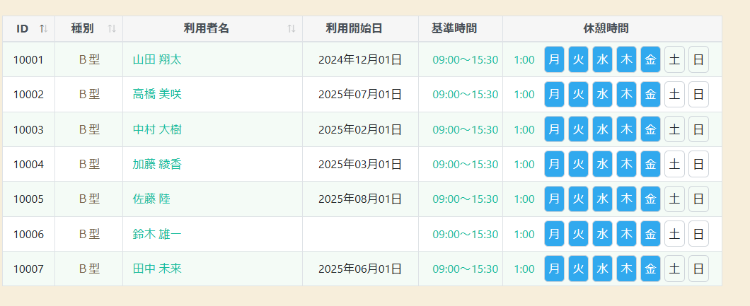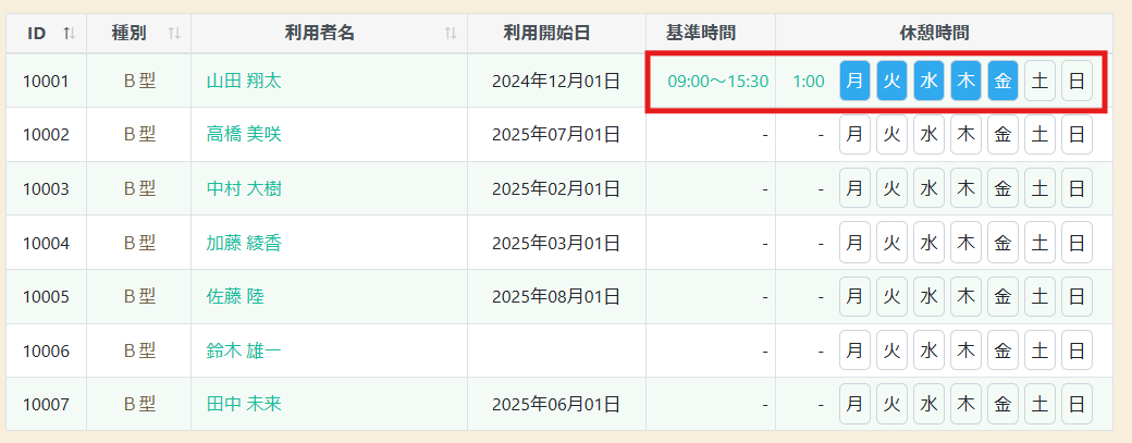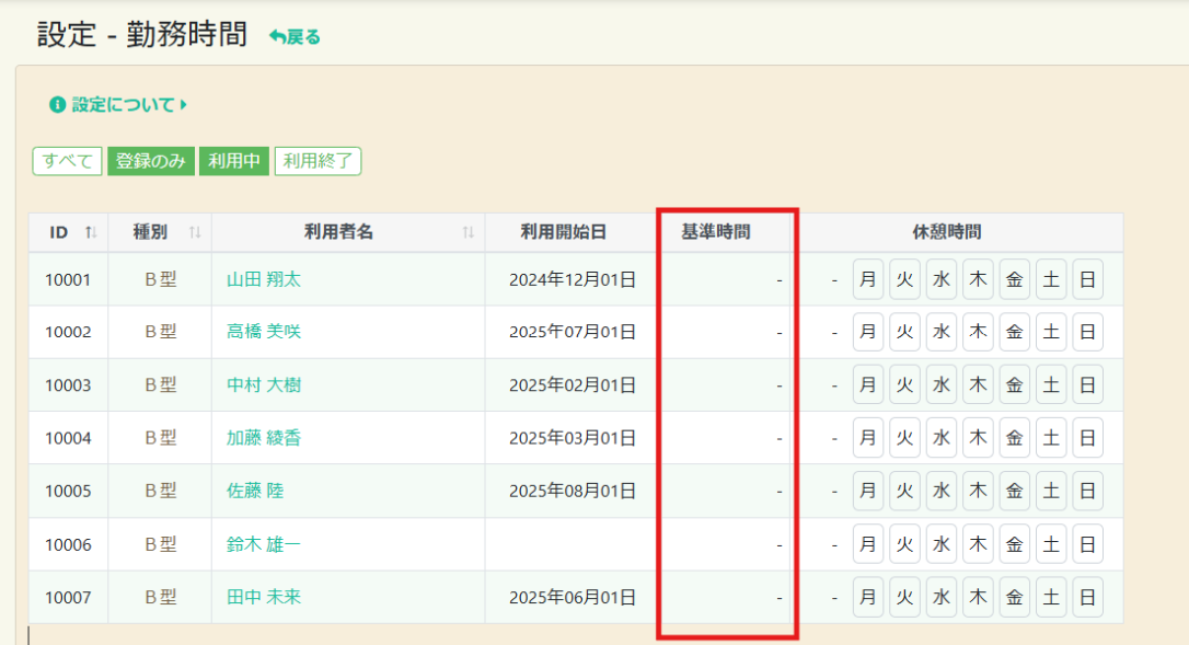 利用者ごとに異なる勤務時間を設定する場合