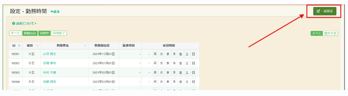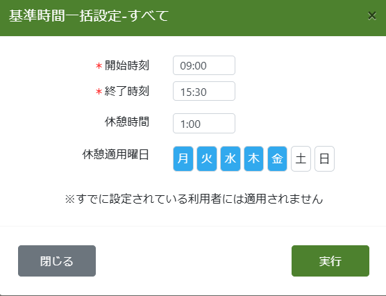 全員分同じ勤務時間を一括設定する場合