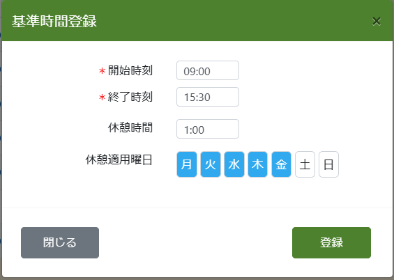 勤務時間を設定することで、