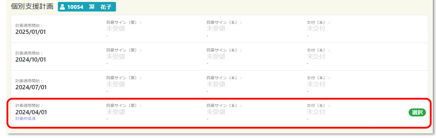 5. サインを行う個別支援計画を選択する