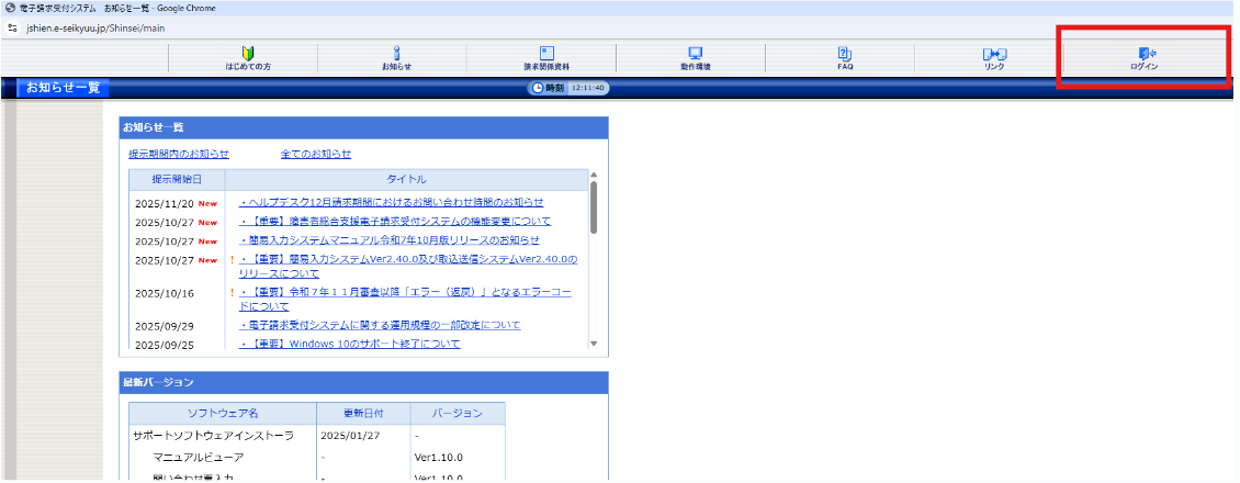 4.「電子請求登録結果に関するお知らせ」に記載のID、パスワードを入力し、ログインします