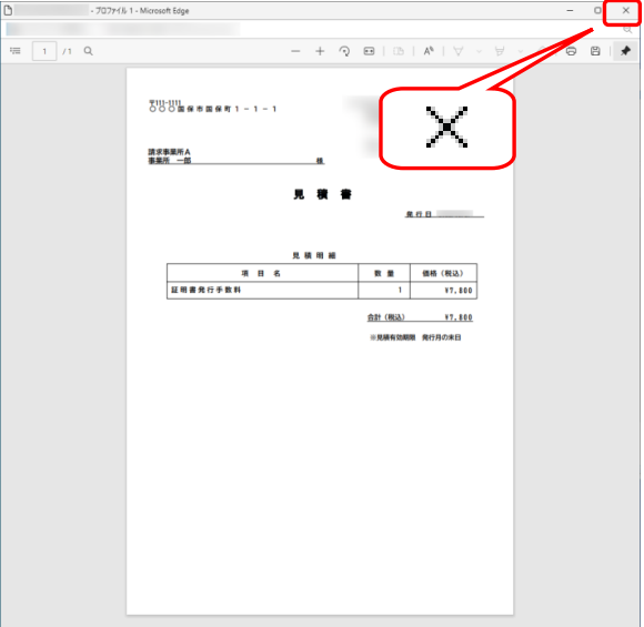 3. 見積書の印刷やPCへのダウンロードが完了したら画面右上にある☓をクリックし画面を閉じます