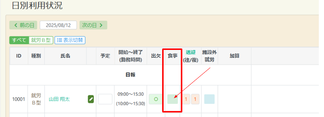 日別利用状況で食事提供体制加算を登録する方法をご説明します。